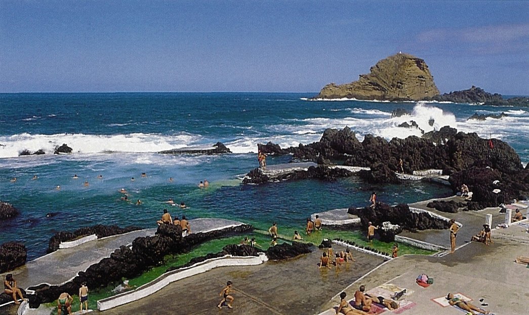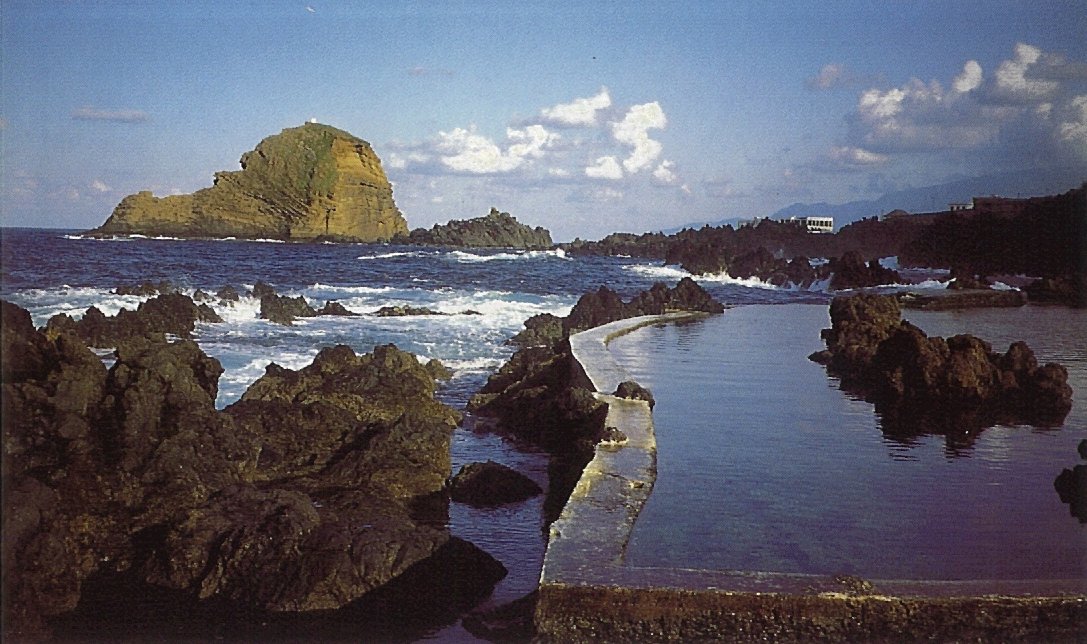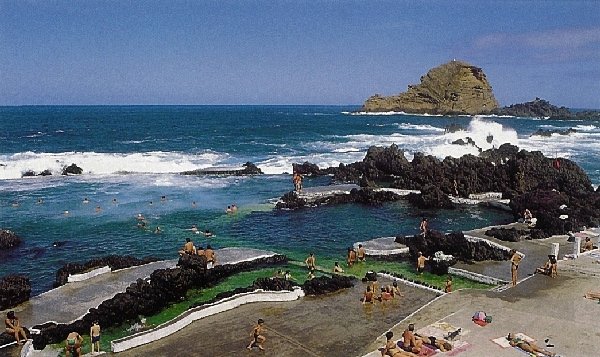 Da Cabana do Pico à Vila do Porto Moniz - à beira mar (foto à esquerda) - gastam-se 7 minutos. Na vila encontram-se vários restaurantes e uma piscina natural (fotos em baixo). As paisagens do mar são deslumbrantes. |