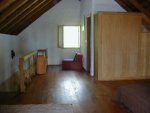 | Vista exterior da Cabana, vendo-se alguma lenha disponível para utilizar na lareira. | |